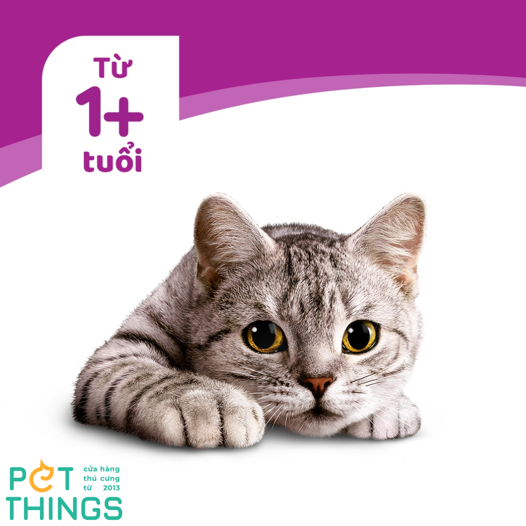 - Pate cao cấp cho mèo, được làm từ cá thật, thịt gà tươi và rau củ đầy dinh dưỡng kèm nước sốt thơm lừng